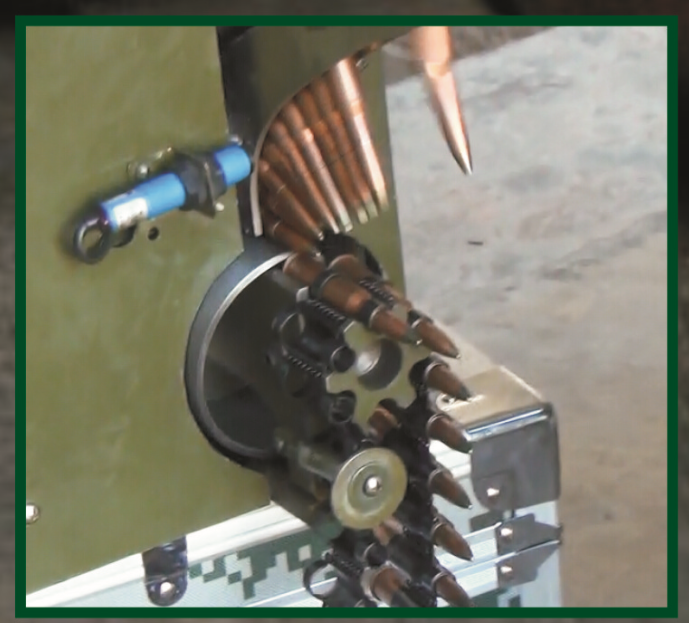 便携式压弹机为机电一体化设计产品,可直接用坦克上的电源,也可配备便携式电源供电;具有自动送弹,自动压弹,压弹速度可调节、压弹到位等特点。产品本身配有手摇手柄,特殊情况下可手动压弹。
